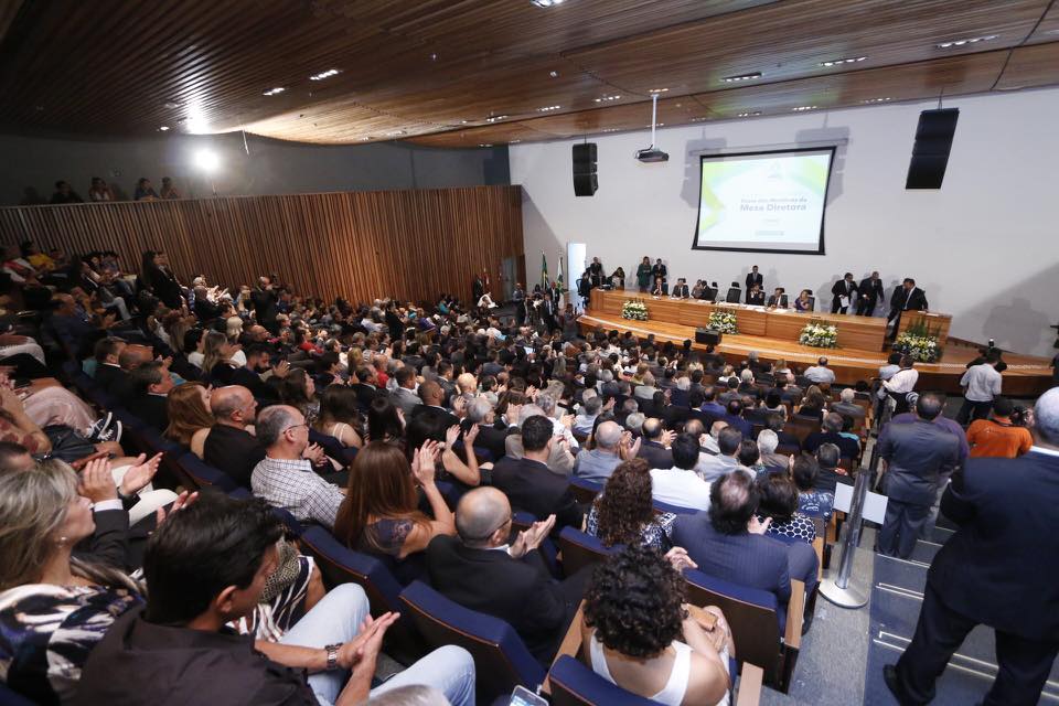 O evento lotou o auditório da Casa na manhã deste domingo (1), em que foram empossados Joe Valle (PDT) e Wellington Luiz (PMDB) como presidente e vice-presidente, e os deputados Sandra Faraj (SD), Robério Negreiros (PSDB) e Raimundo Ribeiro (PPS), como primeiro, segundo e terceiros secretários, respectivamente.