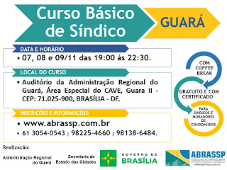 Curso Básico de Síndicos no Guará-DF de 7 a 9/11 novembro 4, 2017 0 Por mediai Compartilhe nas Redes Sociais: Bitcoin Revolution no IESB Asa Norte dia 6/11 Deputado Wellington Luiz, faz carta aberta ao PMDB e a população do DF