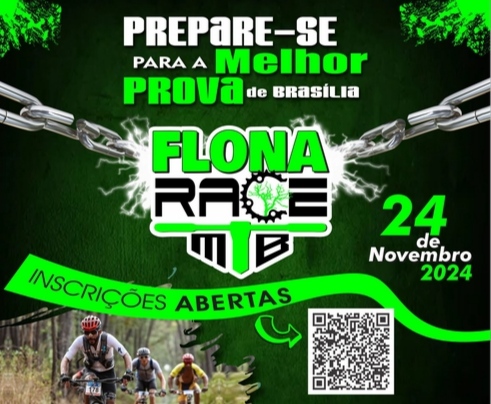 A Flona Race MTB é uma competição de mountain bike realizada há 9 anos por voluntários que atuam para preservar e proteger a Floresta Nacional de Brasília (Flona). O evento, que já é uma das competições de mountain bike mais prestigiadas do Brasil, tem como principal objetivo oferecer uma experiência única em uma das áreas de proteção ambiental mais lindas e importantes do Distrito Federal.